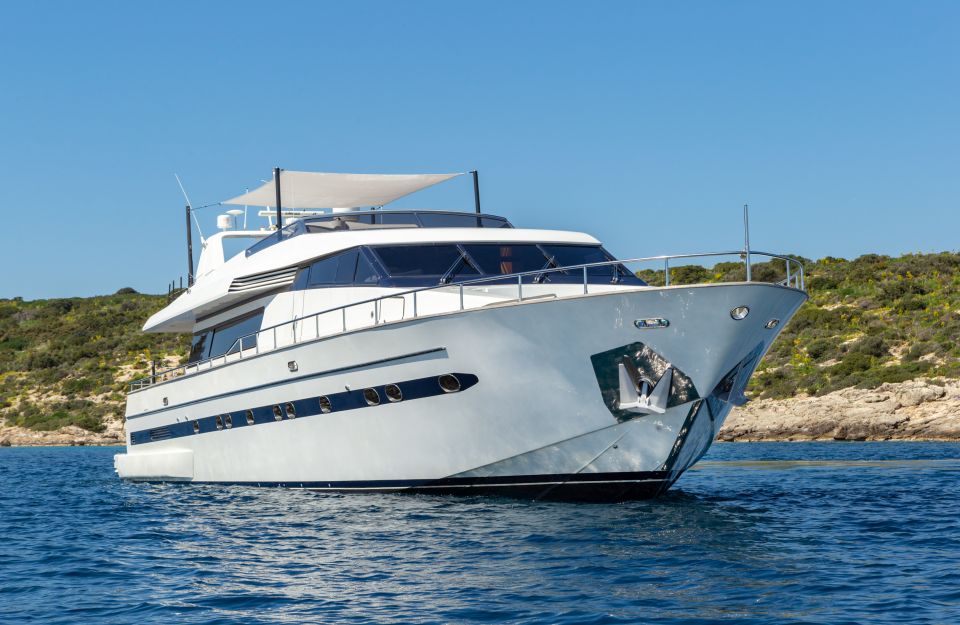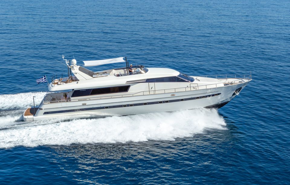 Experience a luxury crewed yacht charter in Greece onboard motor yacht 'The Bird'. Built by Sanlorenzo in 2004 ,this 25.6m motor yacht will make you feel the utmost freedom. She overwent a very comprehensive 2018 refit, with a recent addition of the swim platform and a modern shower on the platform. She features a new teak deck as well as a new layout on the fly bride. By her twin 1500hp MTU the luxury motor yacht Bird is capable of a comfortable cruising speed of 22 knots and a maximum of 26 knots.