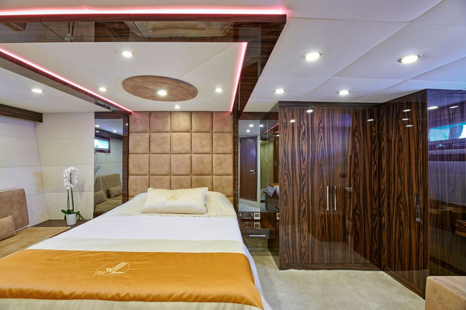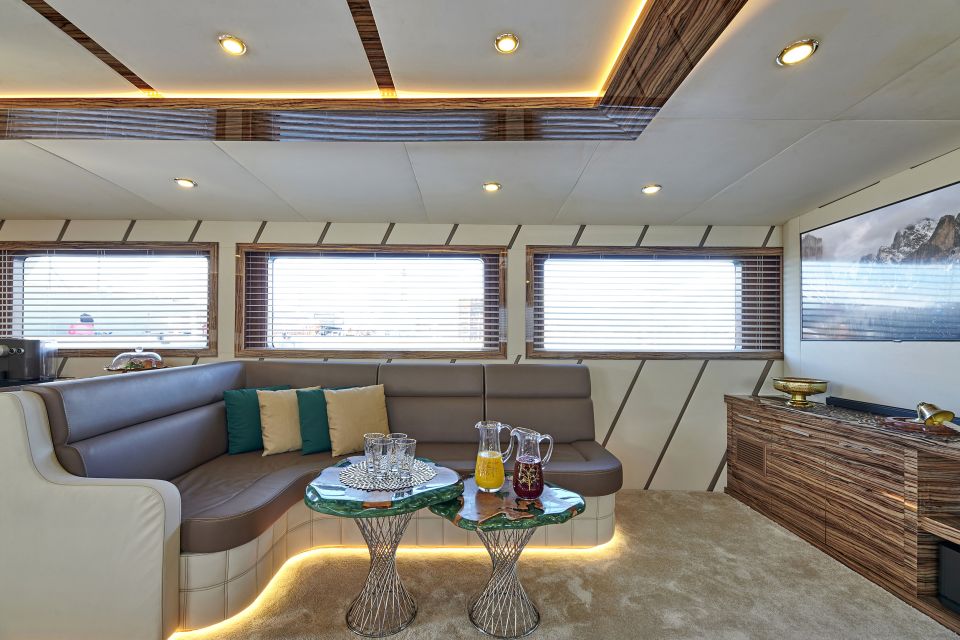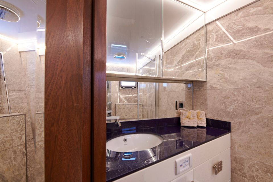 The Yacht is equipped with the latest and most modern radar and navigation technology. She accommodates 10 guests in 5 cabins with ensuite facilities.