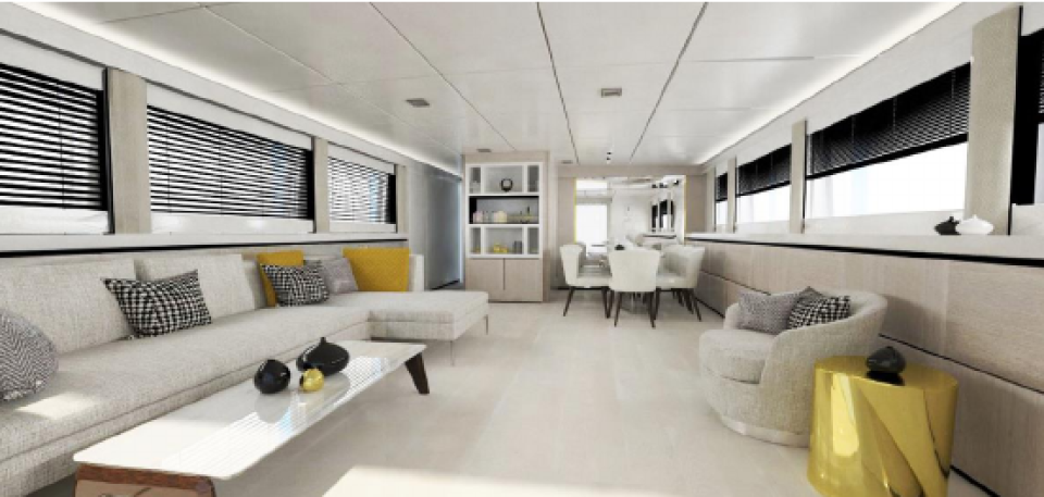 She was built by Admiral in 2008. With a beam of 6.5m and a draft of 2.2m, she has an aluminium hull and aluminium superstructure. She is powered by MTU engines giving her a maximum speed of 28 knots and a cruising speed of 23 knots. Maximum range is estimated at 900 nautical miles. The motor yacht can accommodate 9 guests in 4 cabins with an interior design by Luca Dini and an exterior design by Andrea Bacigalupo.